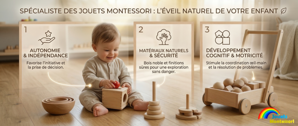 En tant que spécialiste des jouets Montessori, nous avons sélectionné pour vous le meilleur du matériel éducatif. Des premiers hochets sensoriels pour bébé aux parcours de motricité globale pour les plus grands, découvrez notre guide pour transformer la chambre de votre enfant en un véritable environnement préparé, propice à l’épanouissement et à l’autonomie.