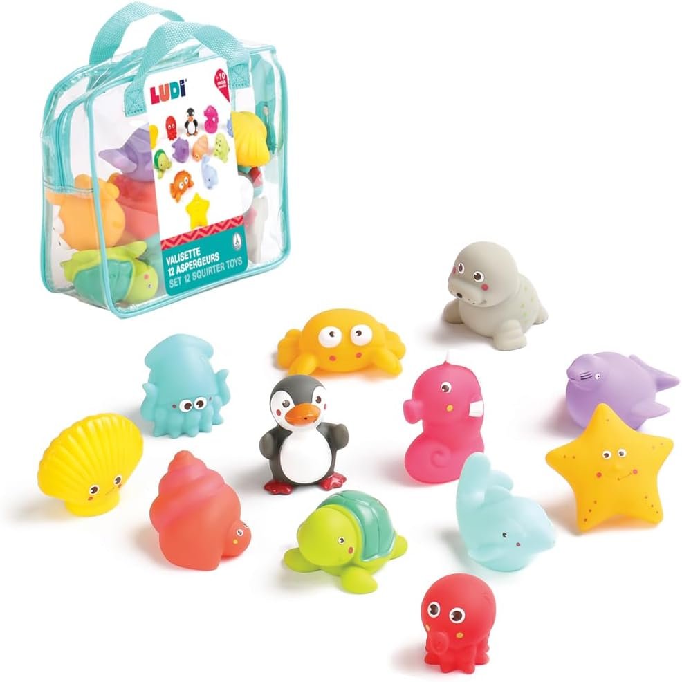Transformer la baignoire en mini-océan d’exploration, c’est l’objectif des jouets de bain animaux marins. Ce coffret comprend 12 animaux marins aux couleurs vives qui flottent et arrosent l’eau : dauphin, pieuvre, poisson-clown, tortue. Dès 6 mois, votre enfant peut manipuler ces animaux arroseurs faciles à saisir ; dès 10 mois, il commence à enrichir son vocabulaire et à structurer de petites histoires (« la tortue nage jusqu’au bateau », « le crabe arrose le pirate »). Un sac de rangement aéré est inclus pour égoutter et sécher rapidement après le bain un détail pratique qui change tout au quotidien.