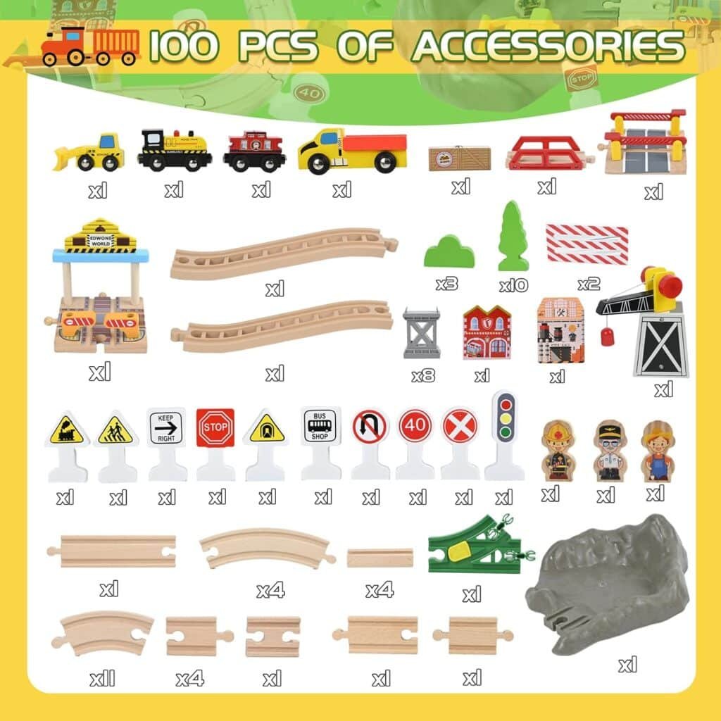 Ce circuit train en bois montessori comprend :