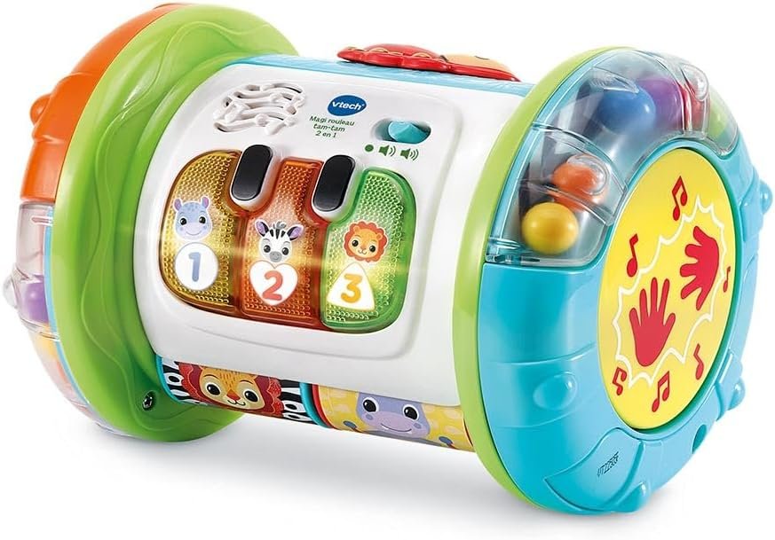 Le jouet montessori musical que vous découvrez ici (version française VTech Baby) a un objectif simple : stimuler l’éveil musical et la motricité de votre enfant dès 9 mois, sans surcharge. Évolutif, il s’utilise sur le ventre, assis, à quatre pattes et en déplacement. Lorsqu’il roule, il le détecte et déclenche des mélodies entraînantes qui incitent bébé à ramper et à le rejoindre. Résultat : un jeu qui donne envie d’agir, exactement dans l’esprit Montessori (simplicité, autonomie, répétition).