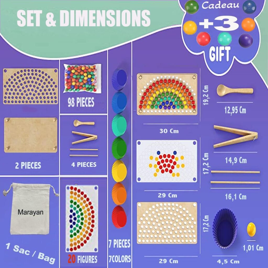 - Objectif pédagogique: Développer les compétences cognitives et motrices précoces, telles que la reconnaissance des couleurs, la discrimination des formes, la pensée créative et la coordination œil-main chez les enfants.