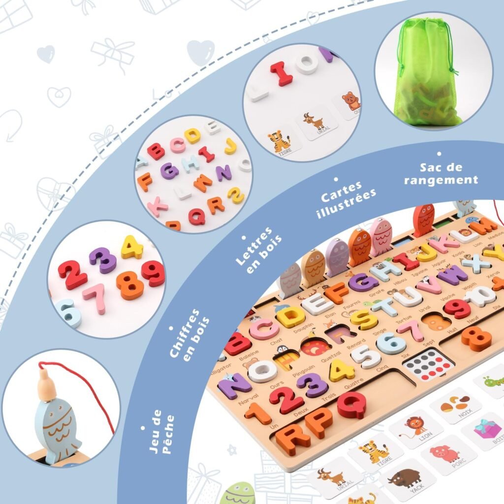 Choisir les jouets montessori activité maternelle, c’est investir dans un dispositif clair qui transforme l’énergie des enfants en compétences utiles. Chaque module de la planche d’activités agit comme un micro-atelier : la pêche aux canards travaille la coordination et la règle ; les anneaux à empiler posent le lien quantité chiffre ; les lettres et formes enrichissent le langage ; les verrous/lacets affinent la pince et l’autonomie. Tout est concret, visible, auto-correctif.