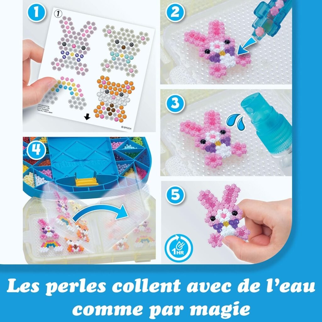 En tant que parent exigeant, vous cherchez une activité propre, autonome et vraiment formatrice. Un kit de loisirs créatifs répond précisément à ce cahier des charges : il transforme la table du salon en mini-atelier où votre enfant conçoit, assemble et finalise de véritables œuvres. Avec la mallette d’initiation Aquabeads un coffret créatif ultra complet vous disposez de 900 perles à eau, d’un canevas, d’un spray, d’un trieur, et de tous les accessoires nécessaires pour démarrer tout de suite, sans colle ni source de chaleur. On place les perles, on vaporise, on laisse prendre : la création tient « comme par magie ». Dès 4 ans, votre enfant peut mener une activité manuelle en toute sécurité et à son rythme.