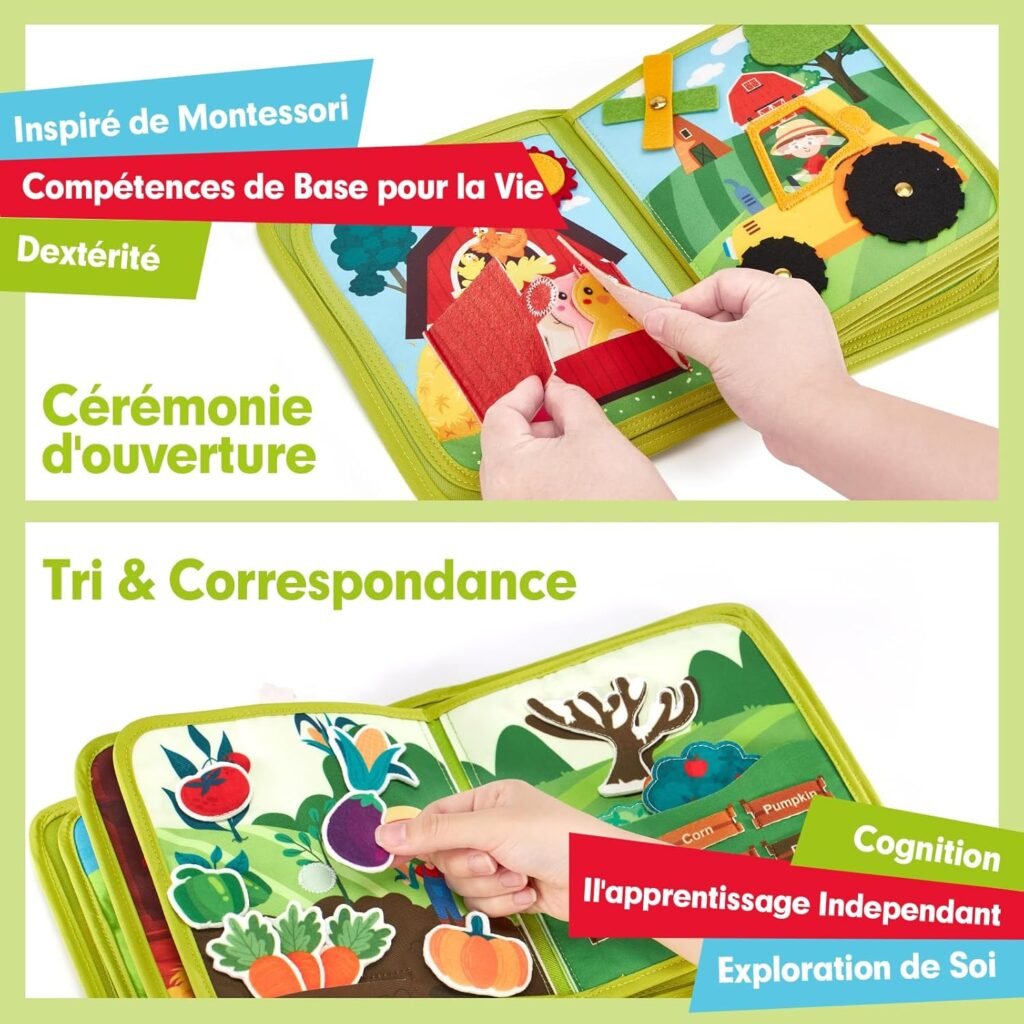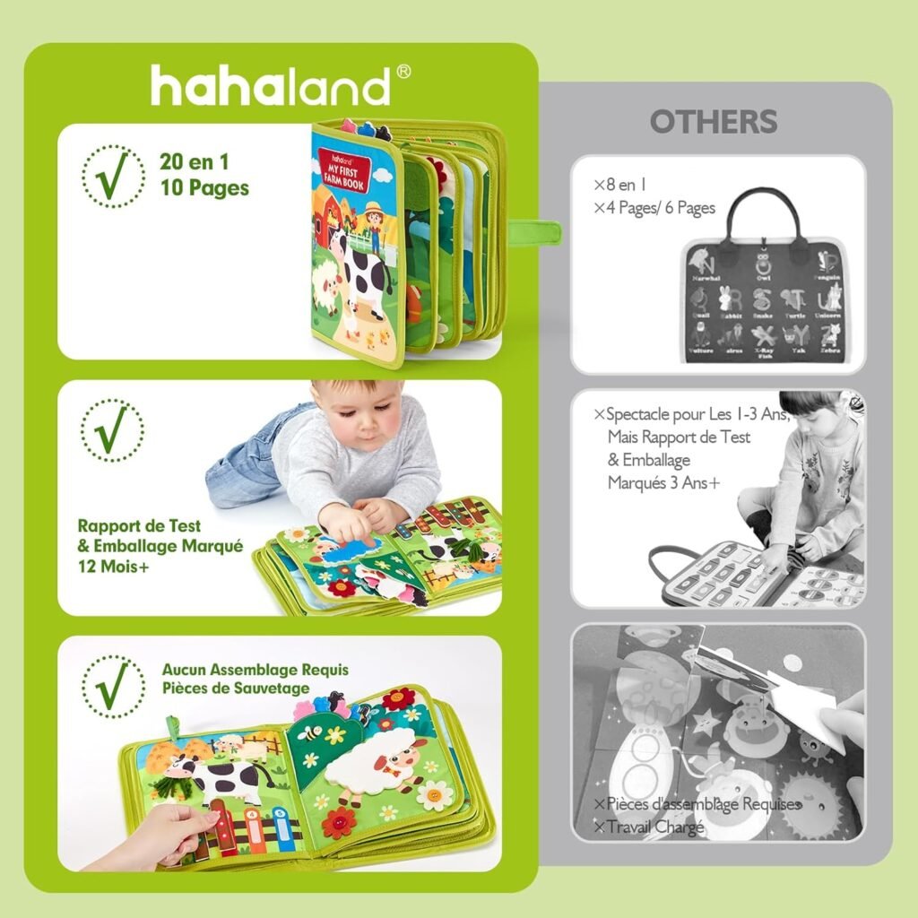 Le Livre de développement hahaland s’impose comme un livre éducatif complet : 20 activités, 10 pages, 6 couches de difficulté, le tout sans pièces détachées. En quelques minutes par jour, votre enfant multiplie les micro-réussites qui consolidissent la motricité fine, l’autonomie et la concentration. Les thématiques formes/couleurs/chiffres et animaux/fruits/saisons nourrissent le langage et la compréhension du monde, tandis que le format quiet book garantit des activités calmes et nomades.