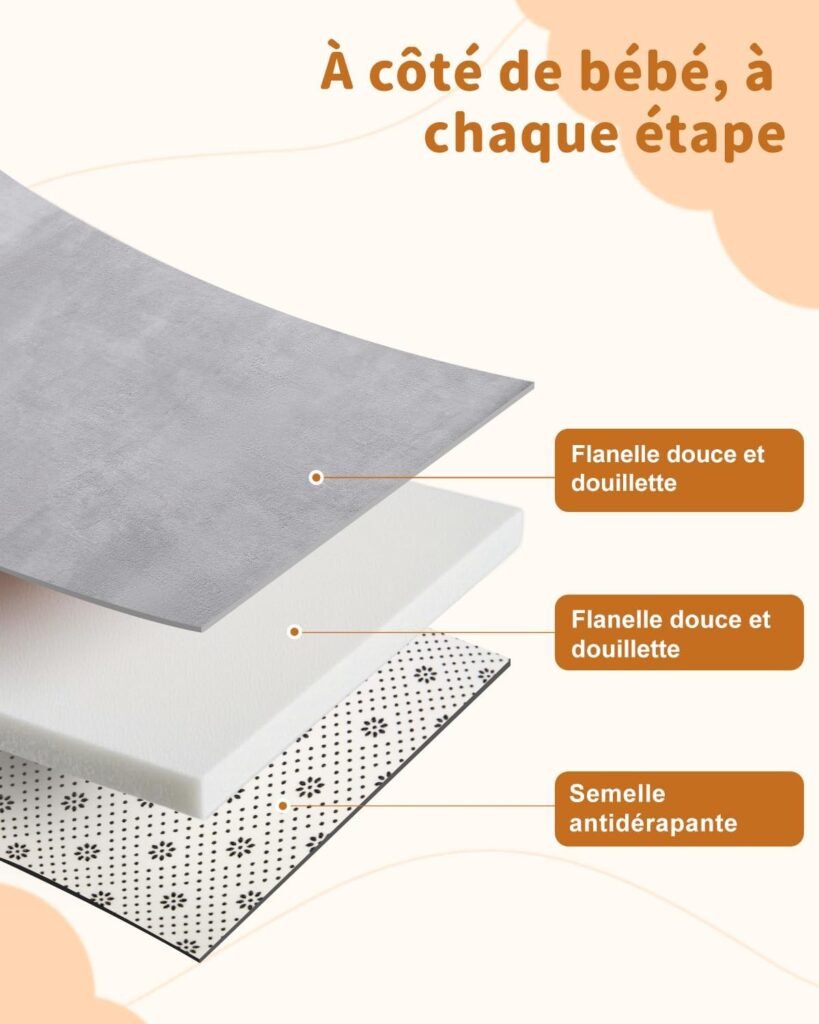 Tapis antidĂ©rapant, impermĂ©able et très facile Ă  nettoyer, il est aussi en matĂ©riau non toxique et votre bĂ©bĂ© ne risque pas d’allergie en jouant sur le tapis. Multifonction, le tapis pour bĂ©bĂ© est aussi parfait pour un coussin de lit, tapis de yoga et de gym ou tout autre exercice au sol, un tapis d’éveil de sol dans votre salon, tapis pour faire un pique-nique dans votre jardin ou dans d’autres espaces en extĂ©rieur.