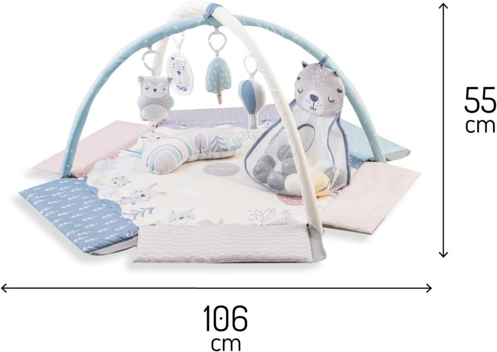 • Robuste et sĂ»r pour les enfants : L’arche de jeu et le tapis de jeu sont Ă©pais et garantissent le confort de couchage nĂ©cessaire. La bordure pliable en tissu empĂȘche l’enfant de rouler